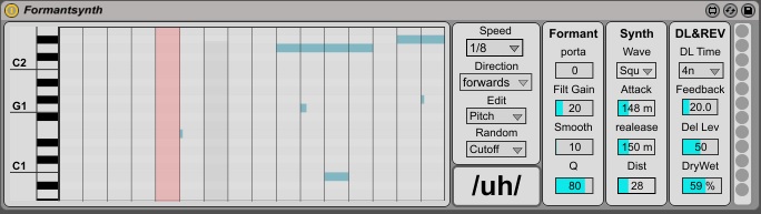 | Description: | Formant Synth + Sequencer You can set the vowel per step. UPDATE: v0.9 vowel can be selected from step sequencer. v0.95 changed interface v1.0 changed interface fixed some bugs |