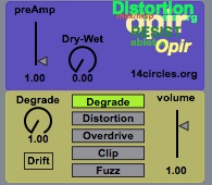 | Description: | Opir is a audio FX device that distort upcoming signal. It has a drift DC offset and tape flutter effect. This is a lite version of upcoming multiband distortion unit. Warning this device can deliver loud noise. |