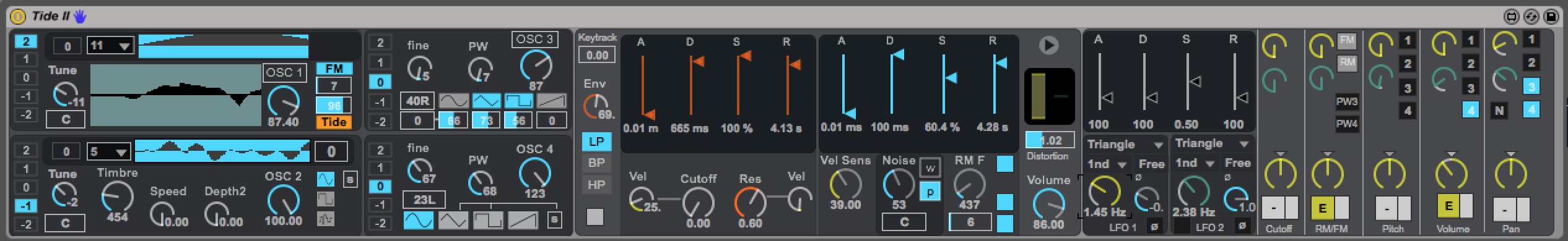 | Description: | Tide II, the successor of Tide. This devices comes bundled with my album titled 'shipbuilding'. If you buy this release, the device files come with it. New features: . custom Waveforms are storable. . multimode svf filter (LP / HP / BP) . Filter bypass for OSC 3 . optimized envelope times . pan modulation for each of the 4 Oscillators and Noise . pulse width modulation for Osc 3 & 4 . phase adjust and re-trigger for LFO 1 & 2 . distortion Each copy of the shipbuilding album contains both Tide and Tide II Synths. Some Tide II Preset sounds: https://soundcloud.com/christiankleine/tide-ii-sounds-1 The new features: http://www.youtube.com/watch?v=GJUdJdThBrU&feature=youtu.be |