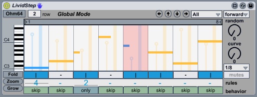 | Description: | Designed to work with the Livid Ohm64 and block controllers in the Max For Live environment, Livid Step provides up to eight tracks of traditional step sequencing, with expanded control over time, step assignments, instrument control, and even improvisation. In addition to step sequencing, each track can record a loop if improvisation. **NOTE** Don't bother using the .amxd from this site. Please download the complete package from the URL below, as it has needed graphics and javascript files for the device to function! |