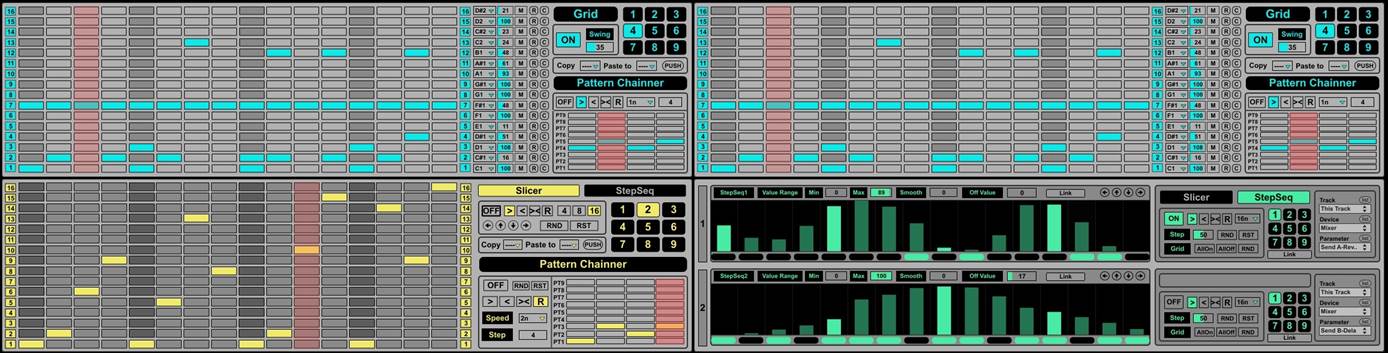 | Description: | simle grid sequencer for drum rack + realtime midi slicer + step sequencer update: added Grid and Slice2 http://hyakken.moo.jp/WordPress/grid-and-slice2/ |
