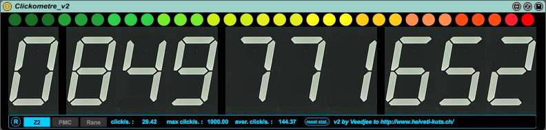 | Description: | Here is a small utility for all Skratch Nerdzz to show the number and speed of clicks for the Native Instrument Traktor Z2, Vestax PMC 05 PRO IV and Rane 57, 61 and 62 mixers. Click in the center of the device on the text, between the faders to change the settings for your mixer. The utility shows the position of the faders and counts the number of left or right click of the crossfader Reset functions are MIDI mappable. For fun, there is also a "clickometer" which indicates the number of clicks per second and the maximum value reached. To save and recall the number of clicks each time you open the device, it will ask you where to save the save file on first time you close the device. If you keep this file in place, it will never ask you again and it will display the clicks number each time you use the device. How to use : Just put the device on a midi track, set the input from Native Z2, and arm the track, that's it !! V1.1 - The counter limit is now 999 999 clicks !!! - Clickometre is now working for Rane 57, 61 and 62 by clicking in the center of the device on the text, between the faders, until it shows "Rane" - The device is now MIDI thru V1.2 - Support for the Vestax PMC 05 PRO IV V2 - New Layout - Save your score and recall it each time you use the device ! V2.1 - Fix Z2 mode If you use it, rate it, Thanks !! Check my others Device : http://www.maxforlive.com/library/index.php?by=any&q=veedjee V2.2 - Add Custom MIDI mode to use with any MIDI fader you want. For that, select MIDI mode on the top switch and adjust the Control Change settings just below to receive the signal from your MIDI fader. |