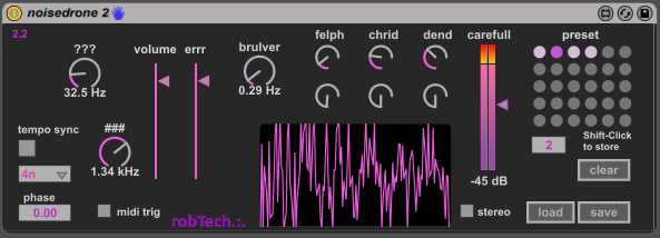 @neonBreath: nice to hear you like it! If you play around for some time you can get it some more predictable; e.g. low Settings of ### to 1 Hz or below often causes a pulsing sound at the given speed; but I think the general unpredictability is the fun factor of this. Cheers, Rob