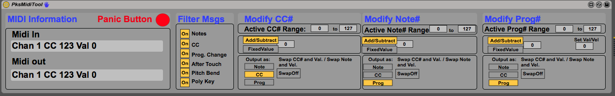 Description: Pk's MIDI tool, is a device for displaying, filtering, and modifying MIDI messages on a Midi Track.
