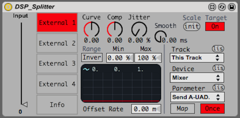 Share a single LFO or Envelope Follower with up to 4 other parameters within Live, or use multiple splitters and the sky (or your cpu) is the limit. |