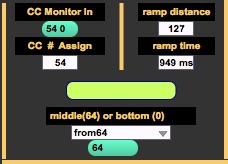 | Description: | Allows you to assign a CC message to a pitch bend, with assignable length and distance, so you can trigger a pitch bend from a button, rather than the typical (if unavailable) slider. The ramp will move up as you're holding down, then back to "middle" (64) or "bottom" (0) upon your release of the button. Observe the incoming CC message from your MIDI controller and assign the controller #. You can then choose to ramp up from the original (middle) range (64), or from a lower (bottom) range (0). There is a little toggle button showing you when your CC message is active. |