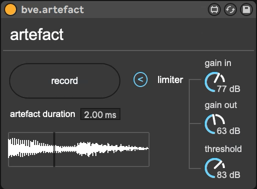 | Description: | bve.artefact is a software instrument that allows the user to play artefacts (pops, clicks, etc) based on buffer content. quick start: - put bve.sendtoartefact~on an audio track - put bve.artefact on a MIDI track - record audio to bve.artefact's buffer -play MIDI notes on bve.artefact's track A basic limiter is implemented to enhance the artefact's volumes. |