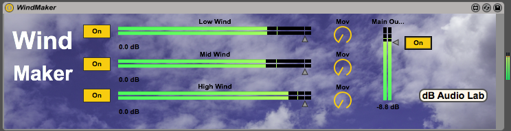 | Description: | Wind Generator device for Ableton Live. Three Wind Bands with volume and wind movement control. |