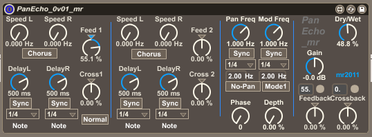 | Description: | SpecD is a stereo dual-stage pitch-shift/chorus echo, and if you shuffle those initial letters up you get SpecD, which sounds like it might be an 80s Japanese audio effects unit. Actually, it's one of my early attempts to try and incorporate all of the useful (possible?) echo control and feedback controls, add pitch-shift/chorus, and an LFO-controlled pan section - and put everything in one audio effect. There's lots of controls, lots of flexibility (you can invert the channels of the initial stage, for example, and you can control the feedback within a channel or the 'crossback' feedback across the two stereo channels), and more. High tweakiness. Putting the chorus inside the two echo/delay stages gives a bit of analogue tape flutteriness, and the auto-pan is just one of my weaknesses (some people use too much reverb: I use too much auto-pan...). If I was doing this from scratch now (this is an old project resurrected from a corner of a hard drive) then I'd try to reduce the number of controls, and to give more guidance to the user on how all the bits fit together. Instead, I've left it in its raw unpolished state and just updated the user interface to a modern-looking 'dark' look. |