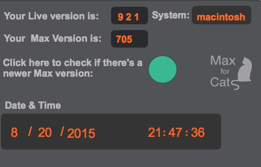 | Description: | This device displays the current setup: - Max version - Live version - System type - Date & Time |