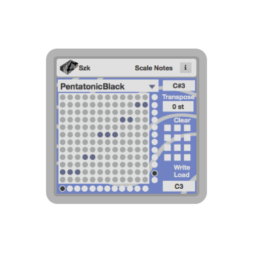 | Description: | SCALENOTES is a minimalist device to scale Midi notes. It reproduces the presets available on the Ableton Live Scale effect, and new scalings can be drawn. You can also transpose notes from -36 st to + 36 st. A preset module can be used to write/load .maxpresets files. ______________________________________________________ All our other devices on Gumroad : https://gumroad.com/szkdevices ______________________________________________________ For more information please visit : http://m4l.szk.fr/ ______________________________________________________ |