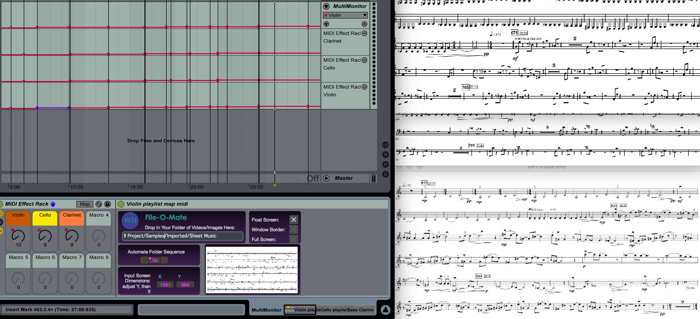 | Description: | In the simplest terms this is a slide show with automation capabilities. This device is a work in progress, but essentially allows you to drag in a folder of images (vid's), and automate them in the timeline. Videos won't playback in this version currently. I made it for sheet music image files initially, because the method of launching an image/video file with a midi note doesn't allow you to click anywhere in the timeline and register the change. This is important when dealing with live musicians, who are playing sheet music that corresponds to your live session timeline(or clips). Ideal things I'd like to get to work would be video file playback and the ability to load in a pdf file and move through the page numbers much like the number of file in the folder. There are a few bugs to too that I am working out. Again, I am new to this stuff so please message me if you have fixes, tips, reported issues, ideas, etc. Even if you have an idea for a better device name! haha |