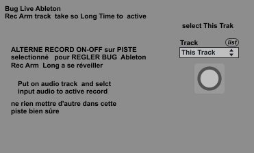 | Description: | Ableton Live BUG Arm record it's so long when change track Arm I made this patch to switch Arm different Track instantly ... Put on audio track select this track active input and select auto..... You cant see record active and unactive By mesure MAGIC live select and active trak intantly without need wake up |
