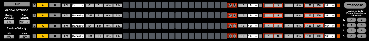 And that just comes to mind if you're using this for a percussion pattern. With 2 pitches per lane, this is equally welcome for building bass variation or synth sequences. Velocity has just as complete coverage.