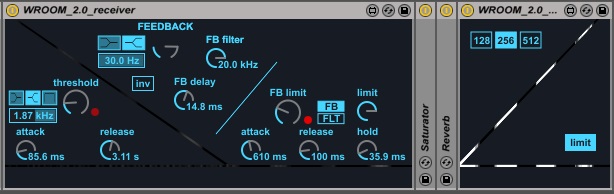 | Description: | WROOM is a device to create harsh,brutal feedback or dreamy, softly oscillating drones or whatever else you make it do. WROOM consists of a 'sender' and a 'receiver' ,setting up a feedback-chain in between them. Inside that chain,you may drop whatever FX , an Overdrive for the 'harsh' or a Reverb for the 'dreamy' . There's a feedback-limiting-circuitry ,working just as if you would be pulling down the feedback-knob in panic because things got 'out of hand'. By using the attack and release controls, you can create complex ducking and self-oscillating structures. You may use several instances of WROOM in your LIVE-set, each sender/receiver pair is unique to a track or an effect-rack. WROOM requires Ableton Live 9 and Max/Msp 7. You get a LIVE-pack with WROOM inside a demo-set, there's a DEMO-version thats limited to working something between 5-10 minutes. changes in version 2.0: -entirely new engine featuring better sound,less latency and improved stability -useful new features -exciting new GUI |