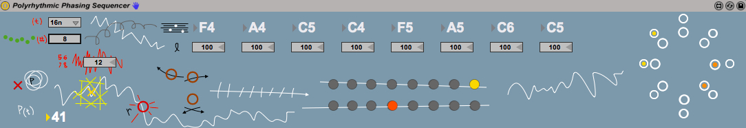 | Description: | This is a Polyrhythmic Phasing Sequencer. Please read the "read me" file in the .zip folder for a complete overview of the plugin and instructions. Feel free to share :) *****v0.2***** phasing lock button added minor bugs fixed ************** |