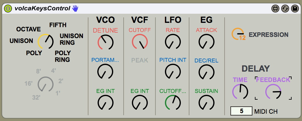 This version has a normal max device look and feel which imitates the layout of the knobs on the physical device. |