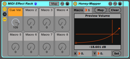 - Activated "Map" in my Live rack and selected the Macro >, deactivated Map and renamed the Macro in the rack