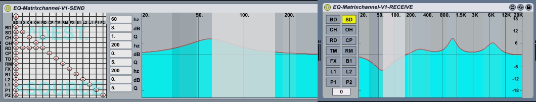 | Description: | Parametric EQ (sender) which is Matrixed with all other Parametric EQs (receivers) in a Livest. e.g. when you change the Gain from EQ1 to +2db Q1 50Hz, then automaticly the Gain from EQ2 will changes to -2db Q1 50Hz... of course only if you wish - change the Setting in a Matrix witch multiplex all togehter. maybe there are some bugs... report them to me. thankz This device need a SEND and a RECEIVE patch dowload them here: http://www.phatline.at/m4l/EQ-Matrixchannel-V1-SEND.amxd http://www.phatline.at/m4l/EQ-Matrixchannel-V1-RECEIVE.amxd and here a demo set: http://www.phatline.at/m4l/EQ-Matrix-V1-set%20Project.zip |
