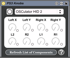 | Description: | This is a device to let you use a PS3 controller to control anything you like within Live. This device is made for Mac really as you can connect your controller to your your mac easily via bluetooth, but I'm sure it will work with any machine with a bit a fiddling. You could also use this with any human interface device as it uses the 'hi' object, but is setup for PS3 controller. Currently only maps x-y axis for left and right analogue, R1, R2, L1 and L2 because that's all I want to use, but all the info is in the patch for mapping other controls. Just select your controller from the drop down menu. If you can't see it listed hit the button to the left to refresh the list. Really simple device and is mainly based on 'Knobs for Monomodular and standalone .94 by amounra' so thanks to Amounra. |