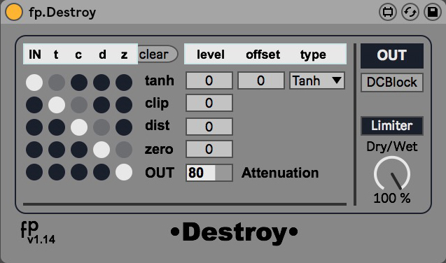 | Description: | Matrix tanh, clip, overdrive and zero crossing, all in one to destroy the sound... |