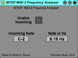 | Name | Version: | MTOF MIDI to Frequency Analyser 1.0 |