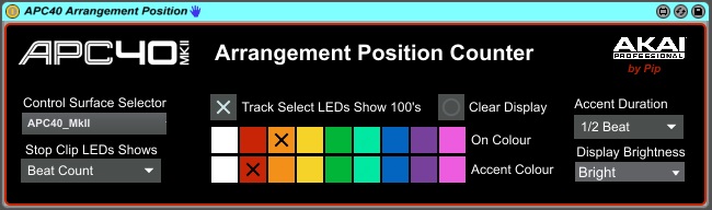| Name | Version: | APC40MkII Arrangement Position Counter 1.1 |