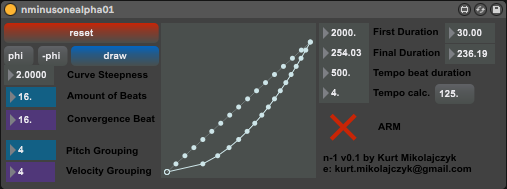 | Description: | This makes grids of midi notes that are accelerating or decelerating based on an parabolic curve. Sometimes called 'exponential rhythm' or 'dynamic tempo' Demonstration in URL |