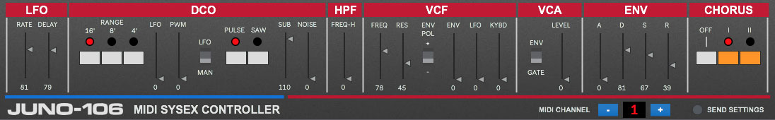 | Name | Version: | ROLAND JUNO-106 MIDI SysEx Controller 1.1 |