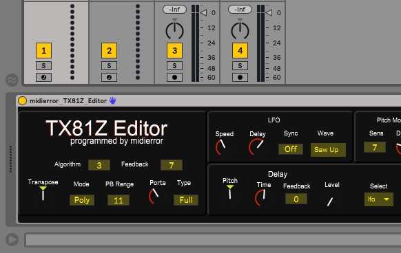 | Description: | This is a Max4Live editor for the TX81Z, which enables you to program every element of the synth and store automated changes. Every parameter is catered for, including a text box to name your patches. Included in the download are: Install Guide Manual Max4Live AMXD File Once purchased you can contact me any time using the built in Support button, with questions, ideas and suggestions. If you have any questions about the software, it's functionality or usage please contact me BEFORE purchase, as I can not offer refunds on software downloads. Required software: Ableton Live 10 Suite Required Hardware: Yamaha TX81Z Please note: This is not a patch librarian, it will transmit parameter changes to the TX81Z, but the software does not load and save patches. However, you may save your sounds on the TX81Z (as described in the manual) and then save them to your computer. This product is in no way affiliated with or endorsed by Yamaha. |