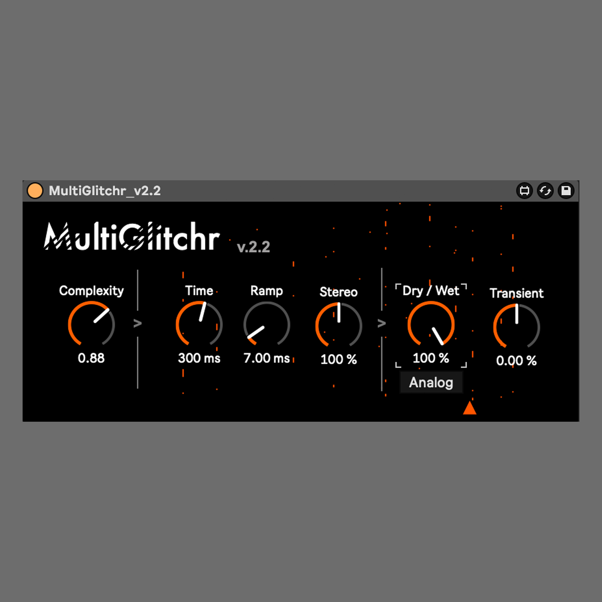 | Description: | MultiGlitchr is a playable effects device. Although it is an audio effect, it is agile and responsive to parameter changes. From glitch effects to chorus effects, there are as many effective uses as you can imagine. Please watch below demo movie. https://youtu.be/OpgoFsFXypk https://www.youtube.com/watch?v=LmGJh7C6oOM Tips for Multiglitchr & Wobblr https://www.youtube.com/watch?v=ncIDQqpjwzs (Recommended: Ableton Live 10 or later) Note 2024/5/27 ・Ableton Live 12 compatibility-checked 2023/11/14 ・Release v2.2 [Add] ・AnalogMode 2022/04/29 ・Compatible Check at Live11! 2019/10/14 ・Release v2 ・UI change ・Push2 Optimize ・Automation name fixed (session mode) ・font change ・color optimize for Live10.1 ・add “transient” FX 2019/07/17 ・Release v1 |