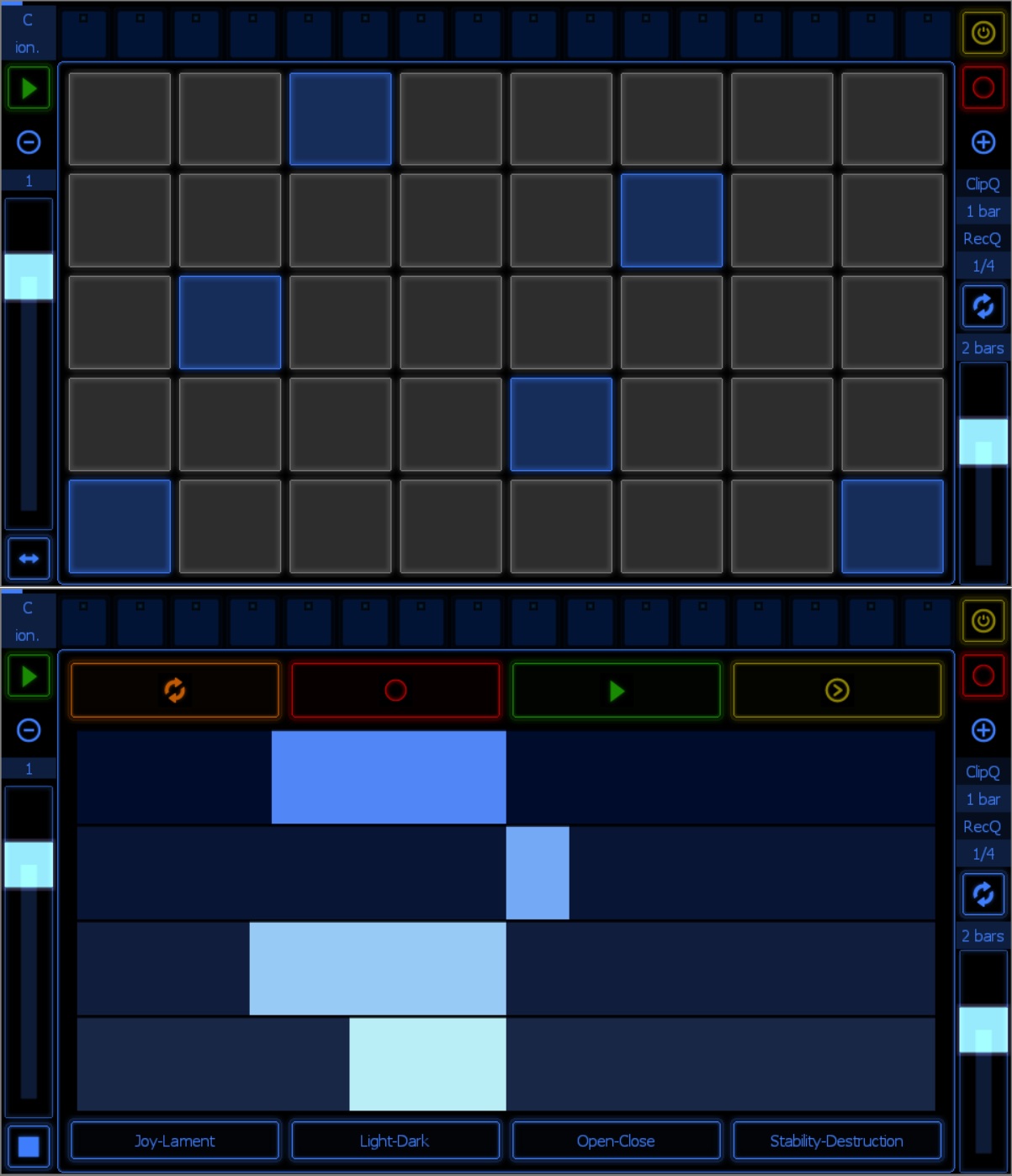 ScreenPlay is an interactive computer music system (ICMS) designed for use by 1 - 16 users via dedicated GUIs that, in addition to including Markovian generative algorithms, incorporates elements of topic theory as a means of transforming melodies and textural/timbral components of the musical output of the system. While the GUI functions similarly to the Ableton Push, the real power of the system is in the algorithms. These algorithms can also be accessed entirely without the use of the GUI to provide better integration into the setups and workflows of pactising electronic/computer musicians. |