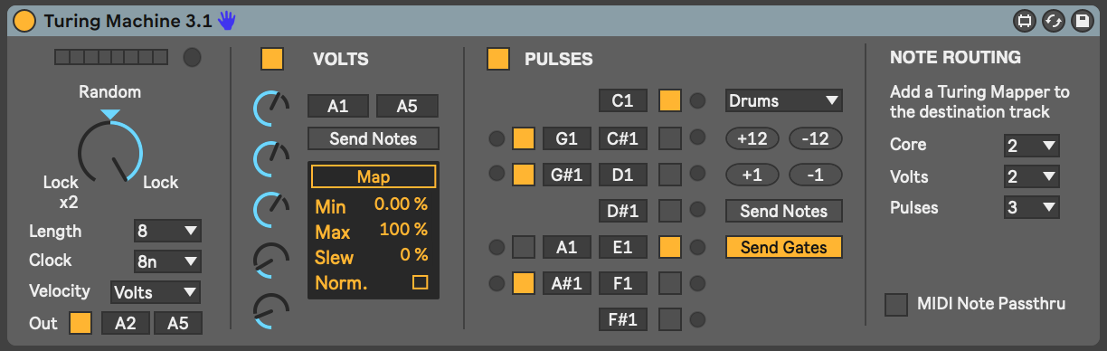 Thanks for the device! Is there a way to map the pulses or 'out' to another track? What I love about the Eurorack or VCV version is patching drums from the pulses and modulation or pitch from the volts and the CV out and just using the random knob as a macro