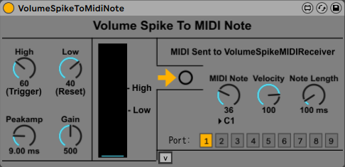 | Name | Version: | Volume Spike to MIDI Note 1.0 |