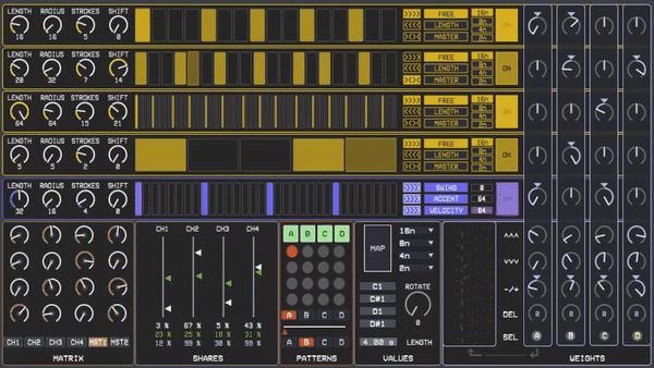 | Description: | STROKES v2.2 Max For Live Sequencing Workstation - Euclidean Groovebox - Generative Feedback Network - Modulation Toolkit Manual >>> https://drive.google.com/file/d/1j48xJ_AWMdahaUxOvuD3kQsQFqoM1B00/view v2.2 update demo >>> https://www.youtube.com/watch?v=GF4MS0_Z0o4 v2.1 update demo >>> https://www.youtube.com/watch?v=-YXM9iCQMzg Demo >>> https://www.youtube.com/watch?v=cXk1fE7E3bY Tutorial >>> https://www.youtube.com/watch?v=Yu3Kx7ha5NY What's new in v2.2? - 4 new channels of rhythm generation, each with 8 unique algorithms - 2 new matrix sequencer modes: XY grid/cartesian sequencing - 3 new demo projects - New hardware support: Monome Grid 128 - Sample accurate sync with Ableton Live - Fixed lots of bugs |