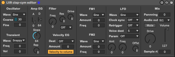 LXR clap-cymbal editor controls Sonic Potions LXR clap-cymbal voice.