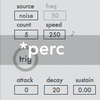 | Description: | *perc is a percussion synthesizer which generates its sounds by sending short impulses of noise to a resonator. This resonator has been built from a delay line in combination with several allpass filters, the signal will be additionally sent through a comb filter emphasizing the characteristic sound. Continuously shaping the sound by different parameters will result in harmonically rich, tonal but still noisy percussive sounds, depending on the individual settings. It is possible to shape the sound on two different channels (left+right) to achieve a simple spatial distribution. Furthermore it is possible to put some additional reverb on the sounds to create some reverberation tails which can be recorded within the device to obtain a noisy pad sound that can be played polyphonically after the generation process. Demo Video: https://youtu.be/m3oNYKIlphI Further documentation can be found in the Max for Live device if Ableton Live ́s Help View is turned on. |