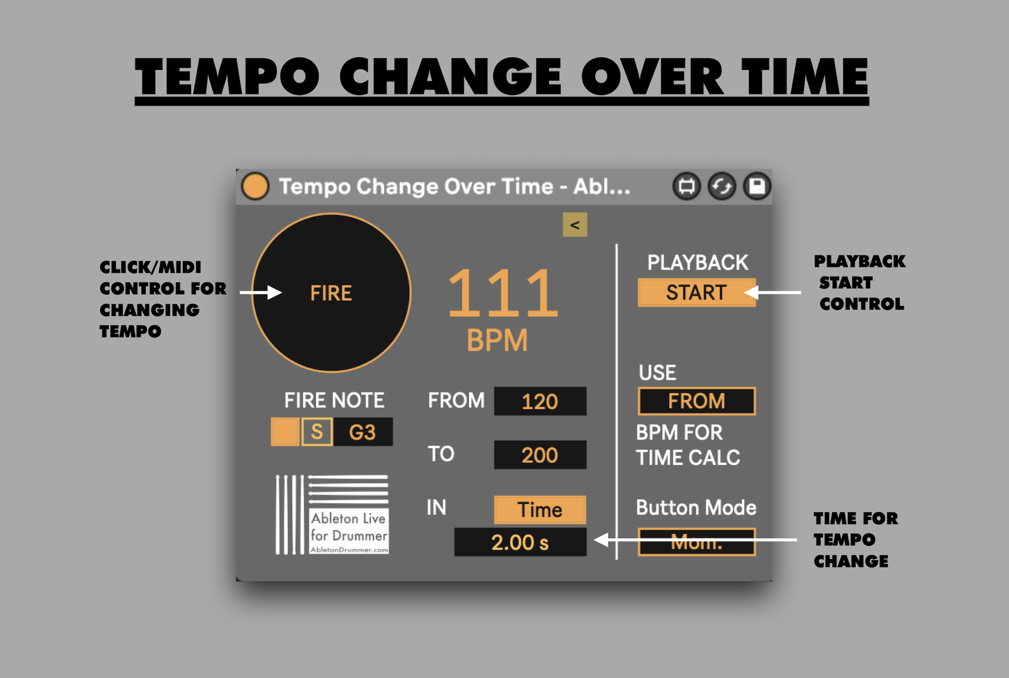 | Description: | This device lets you change Ableton Lives BPM over an editable time (e.g. 120-150 in 10 seconds) by selectable values. This becomes handy during a live performance if fire smooth tempo transitions. It is included in the: TEMPO CONTROL COLLECTION Wich you can get: https://gum.co/tempocontrolcollection 7 devices for dynamic and automated tempo control for Ableton Live 10 + 11 (6 devices will work in Ableton Live 10+11 - one device will only work in Ableton Live 11) Check out the video tutorials for those devices here: https://www.youtube.com/playlist?list=PLUh6TpzNu0gO7tbE6YFC7z-fA40ATuDln More info on those devices + my Ableton Tempo Control Guide: https://blog.abletondrummer.com/ableton-live-tempo-tempo-follower-guide/ ---------------------------------- Check out more Max for Live devices here: https://maxforlivedevices.com/ All Devices - https://maxforlivedevices.com/category/all-devices/ Collections - https://maxforlivedevices.com/category/collections/ Control - https://maxforlivedevices.com/category/control/ Free - https://maxforlivedevices.com/category/free-max-for-live/ Hardware - https://maxforlivedevices.com/category/hardware-control/ How To and FAQ - https://maxforlivedevices.com/category/faq/ MIDI Tools - https://maxforlivedevices.com/category/midi-tools/ Max for Live not only for drummers: https://blog.abletondrummer.com/free-max-for-live-devices/ How to install Max for Live devices: https://blog.abletondrummer.com/how-to-install-max-for-live-devices-in-your-user-library/ List of best Max for Live for live music performance in 2022: https://maxforlivedevices.com/best-max-for-live-devices-in-2022/ How to get Max for Live devices: https://maxforlivedevices.com/how-to-get-max-for-live-devices/ Frequently Asked Question and How To Max for Live: https://maxforlivedevices.com/category/faq/ |