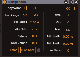 | Description: | I created this device while experimenting with SWAM woodwind instruments. I wanted to be able to trigger notes with varying intonations and timbres, mimicking alternate fingerings in contemporary techniques. That’s when I came up with the idea of using the pitch bend in an interesting way… Basically, what this device does is to create a keyswitch on your keyboard which is used to trigger an “alternate fingering” of the currently played note. It does so by triggering an alternate note close to the currently played one and by modulating the pitch bend value so that the resulted pitch returns to the original note, either perfectly tuned or altered (depending on your settings). By quickly toggling the keyswitch on and off you can therefore create a pretty convincing bisbigliando effect...at least with the SWAM Woods instruments! It might be possible to create interesting results with other instruments too, but generally it’s best suited for instruments which are highly playable and which pitch bend alters the timbre and volume of the instrument, not simply bending the frequency like in samplers or classical synthesizers. In order to get this to work, you need to configure a few settings, such as to enter your instrument’s range and PB range. Otherwise, the pitch won’t be aligned properly. Other settings are explained in more details in the Info View. |