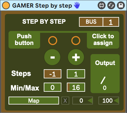 | Description: | Game Controlers as Ableton Controler Part.6 of 6 / Gamer Collection A master + 5 optionnal plug-ins to use game controlers as Ableton Live controlers. Works with almost every USB game controlers (gamepad, joystick, wheels,..) and other ones with USB adaptator, with keyboards and mouses too. Gamer Master is necessary to send game controlers datas to others plug-ins. Un plug in Master + 5 autres options pour utiliser quasiment tous les controleurs de jeu USB (ou playstation,.. avec adaptateurs USB) en controleurs pour Ableton. Vous devez utiliser au moins un plug Gamer Master pour qu'il envoit les données aux autres. Details Gamer Master : selection de la manette ou du joystick, 12 boutons + 8 coins de la croix directionnels assignables à une note MIDI, 4 axes assignables à un parametre de Live Gamer Tester : visibilité globale des données envoyées par le controleur (certains boutons ou axes envoient plusieurs données différentes simultanées) Gamer Axis Splitter : permet de diviser l'axe d'un joystick en 2 assignations différentes, un parametre à droite et un autre à gauche par exemple Gamer Buttonsparameter : permet d'assigner 6 boutons à des paramètres avec une valeur "on" et une valeur "off" Gamer Matrix : permet d'utiliser les 2 axes d'un joystick pour créer une matrice en 2 dimensions 5 par 5, pouvant ainsi déclencher 25 notes différentes selon la position du joystick Gamer Step by Step : permet d'assigner 2 boutons à un même paramètre pour le piloter pas à pas (+ et -), on peut par exemple changer d'octave sur un instrument en l'assignant à un plug-in MIDI Pitch avec des pas de 12 |