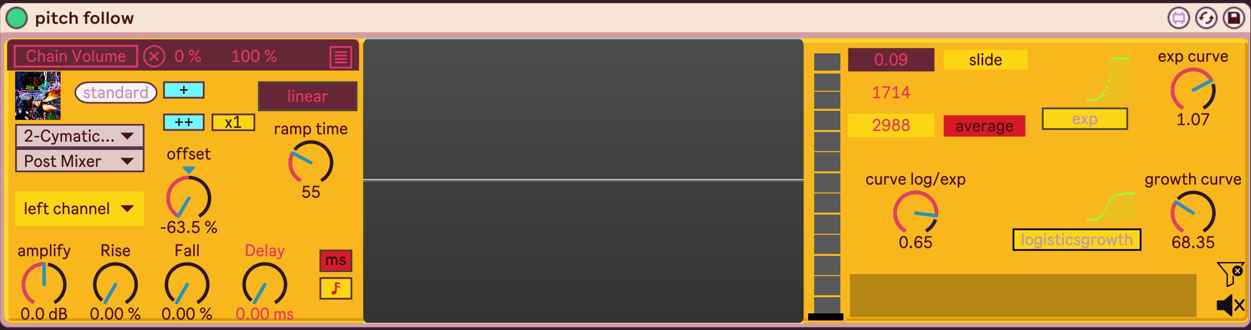 | Description: | https://www.youtube.com/watch?v=o1A00RbPkRM https://www.youtube.com/watch?v=LnjIojn7yN0 A maxforlive device that tracks and follows the pitchbend of an audio source in real time. There are a lot of possibilities to modify the resulting curve. You are able to map anything to the pitch. |