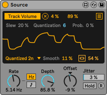 | Description: | Source is an API control source, highly influenced by the Buchla 266 module, the "Source of Uncertainty". Instead of choosing LFO waveforms, in Source, you choose different functions to work with, like Fluctuating, Quantised and Random stored "voltages". Version History : 3.oo - new UI, redesigned timing, more API destinations 3.o1 - independent (rise and fall) smoothing control 3.o2 - small UI fix in the mapping destination window 3.o3 - Apple silicon check 3.o4 - dynamic UI 3.o5 - Live 12 compatibility check |