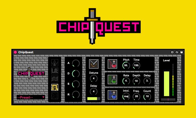 | Description: | It’s not exactly a simulated 8-bit model, but it lets you easily create “8-bit-style” or chiptune-like sounds. I just started learning Max for Live, and this device is actually my very first patch. I'm really enjoying building instruments in Max! Also, I’m an indie game designer. I recently released a new game on PS4, Xbox, Nintendo Switch, and Steam — it’s called “Dungeon and Gravestone.” Please check it out if you’re interested! Thanks! +++ ChipQuest Instruments include: Triangle, Square (12.5%, 25%, 50%), and Noise waveforms A second voice for easily adding overtones Initial pitch bend Vibrato Arpeggio |