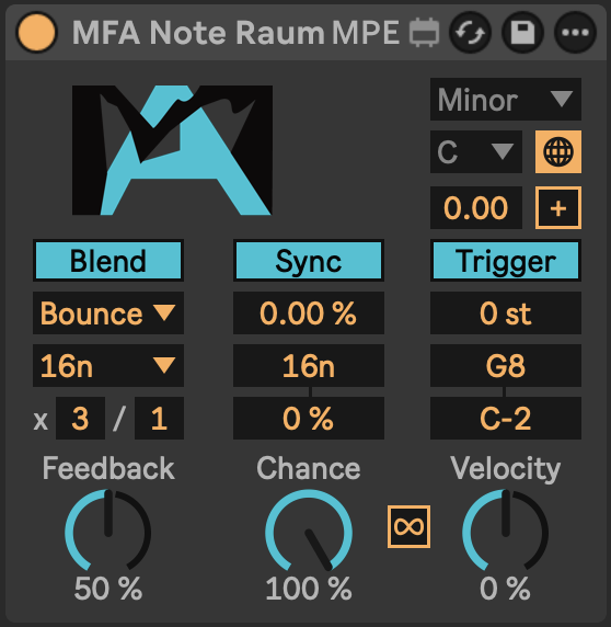 | Description: | Take MIDI note echoes to the next level: with a variety of innovative rhythmic combinations, performance features, and bounded patterning options, Note Raum truly exists in a realm of its own. Designed by Ableton Certified Trainer Noah Pred, Note Raum takes MIDI Note Echoes beyond - within limits. Featuring a variety of metrical rates to be multiplied, scales to be quantized, swing to be shuffled, time modes to switch, and chance to be gambled, Note Raum already presents a unique take on conventional note delay effects. Add unique Limit and Bounce modes to create repeating or reflecting note patterns, and Note Raum constructs elaborate musical architectures from the simplest of materials. Optimized for Push with full Info View annotations, it’s easy to learn and fun to use – just place it prior to any instrument in Live 10 Suite or higher. Requires: Ableton Live Suite 10.1.x or higher running Max 8.1.x. New in v1.9: New Wrap mode algorithm, outgoing note sustain toggle, GUI improvements, and performance optimizations New in v1.8: Updated GUI, Scale Awareness for Live 12 & up New in v1.7: Rate divisions for more flexible tupletted rhythmic delays New in v1.6: Positive Velocity values for dub-style MIDI feedback saturation |
