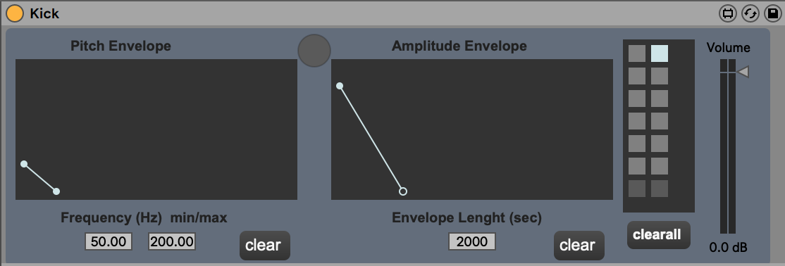 | Description: | M4L device. Generate several user programmable Kicks. offers the possibility to intervene on Pitch and Amplitude Envelope, save and modify your own preset. |