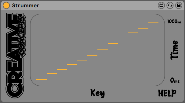 | Description: | Use this device to delay a set of keys starting from C3. Delay upto 12 keys by upto 1000ms to add variation to chords drums or any midi elemets. |