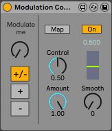 | Description: | Comprehensive Modulation Control. Automate "Modulate Me" Knob or use M4L Modulation devices. Control Modulation with Control and Amount. Unidirectional und Bidirectional Modulation (+/-, +, -). Modulation Smoothing. Have fun :) |