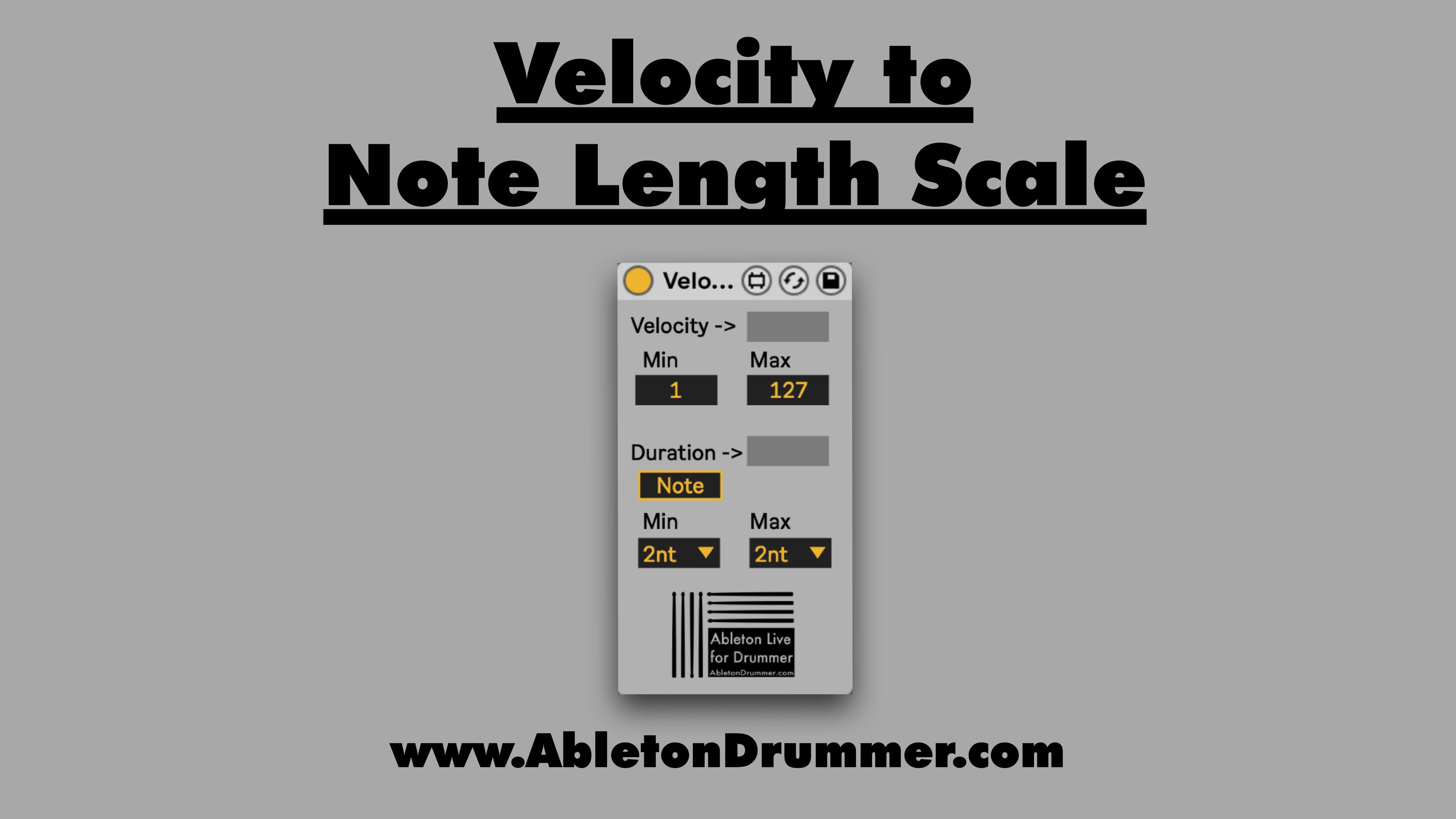| Description: | This devices is part of the "Velocity Pack" which consists of 7 devices - check it out here: https://blog.abletondrummer.com/velocity-devices-pack---max-for-live-pack/ The “Velocity to Note Length Scale” device lets you scale the incoming velocity to a set duration. |