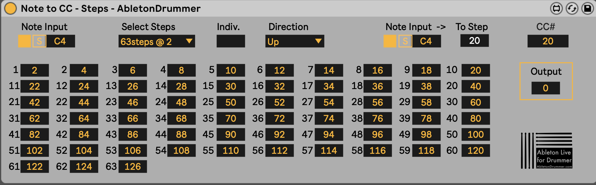 The Note to MIDI CC devices are giving you the ability to create and set MIDI CC values. This way you can control external MIDI hardware, send MIDI CC to other softwares and apps or route this MIDI back to Ableton Live. First of all you get the chance to not only have to stick to only one setting here. Just by (de-)activating devices you can set-up and switch between multiple functions for just one MIDI note to trigger. Especially for live-sets and performances you might want to use the same pad or button of your external midi controller to trigger different things in different parts of your performance. |