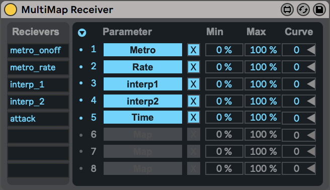 | Description: | Map any parameter in Live to anything sent from a global send object in Live or Max. QUICKSTART Type the name of your send object, and map it to any parameter in Live. You need to specify the range of the input data. _ If you enjoy this device, please consider supporting its development here: https://www.paypal.com/donate/?hosted_button_id=X8G45PFSVWDDA –––––––––––––––––––––––––– Change-log v1.1 Added the ability to scale the input. |